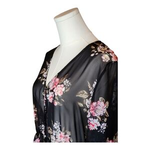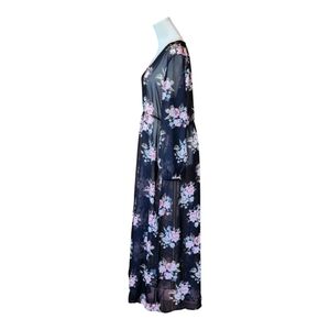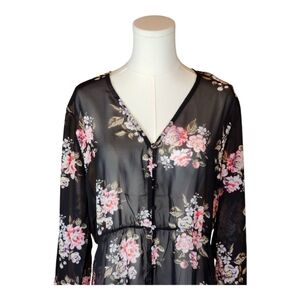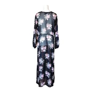 Mod/x Sheer Black Floral Maxi Dress Long Sleeve Boho Button Front Cover-Up L