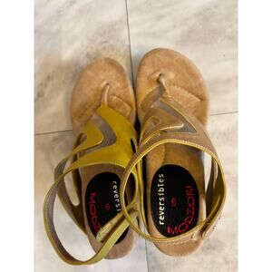 Modzori Zoey Women's Mid Wedge Reversible Sandal Mustard Beige Size 6