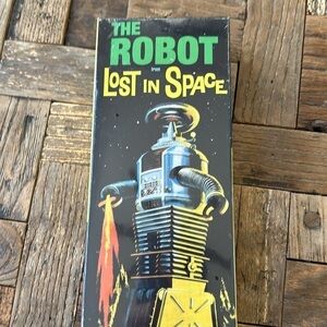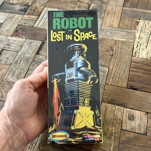 The Robot from Lost in Space 1:24 Model Kit. Plastic robot assembly, completed size: 3.25”. Still in sealed box. From 2009. Painting & assembly required. Ages 15 and up