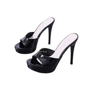 Moermashi Womens Size 8.5 Black Faux Leather Peep Toe 5" Heel Platform Shoes