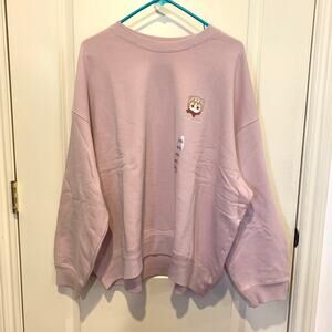 Mofusand x Uniqlo Collab Printed Embroidered Sweatshirt in Pink XXL