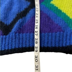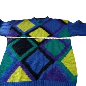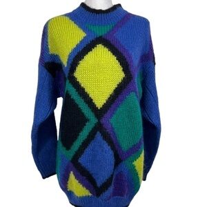 Mohair Blend Colorful Fuzzy Diamond Print Long Tunic Sweater 80s 90s