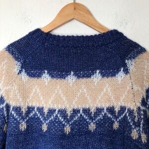 Mohair Knit Sweater XL Blue Beige Diamond Pattern Pullover Cozy Warm