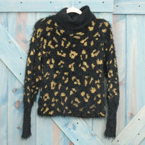 Mohair Sweater Fuzzy Leopard Animal Print Turtleneck Top Size Small Medium