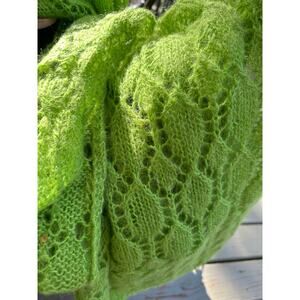 Mohair Wool Crochet Blanket lime green Hand Made Diamond Knit Throw 44x90” shawl
