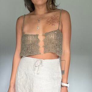 Hand knitted cropped mohair cami in forest green. Four chain enclosure in gold. Hand knitted by me. Very delicate. Commissions possible in other colors and sizes. Just enquire!