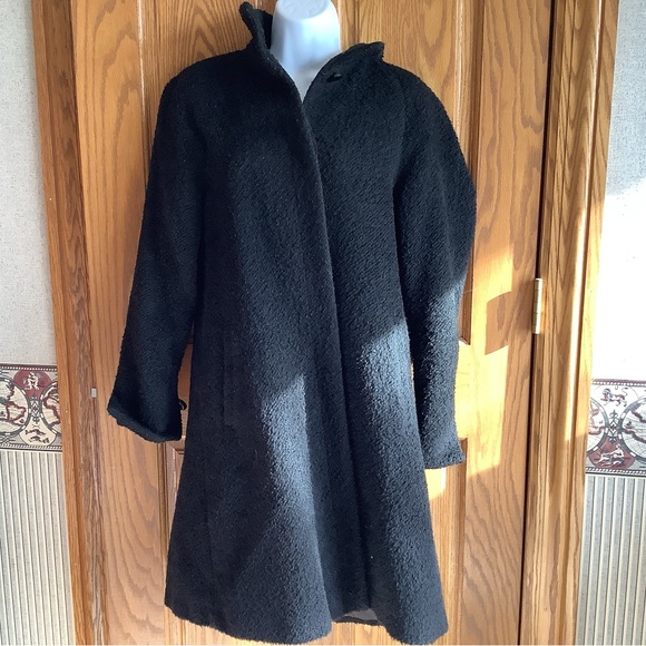 DONATELLA Made in Belarus wool/alpaca/wool/polyamid vintage? Coat. Black. 2 front pockets, hidden buttons, clean lining Black
