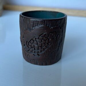 Mohawk Pottery Vase Geometric Design Turtle and Dove 1970s turquoise interior