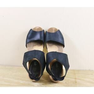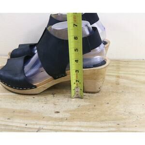 Moheda Sweden Victoria Clogs 8.5 Black Leather Wooden Peep Toe Heeled Sandals