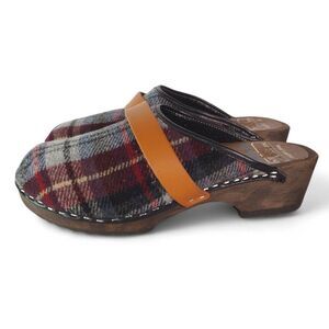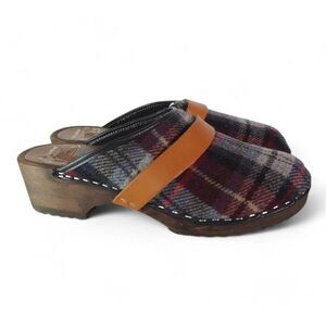 Moheda Toffeln Tartan Plaid Wooden Swedish Made Slip-on Clogs Women's 8.5/39