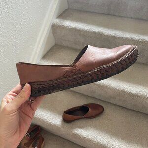 These gorgeous walnut-colored leather shoes are so comfy to wear! I have only wore them for about a year + am only selling because I have several other similarly-styled shoes + am looking for something new.