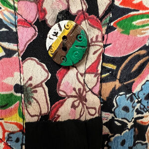 • Color: Black base with multicolor floral patchwork print