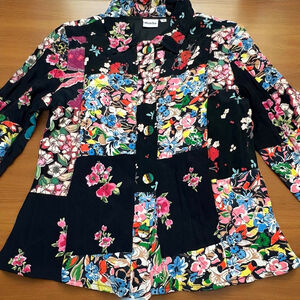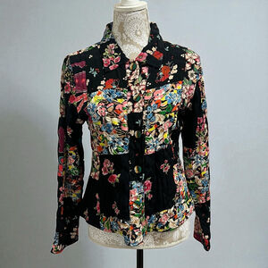 Mohito Women’s Vintage Inspired Patchwork Floral Blazer Jacket Black Boho Small