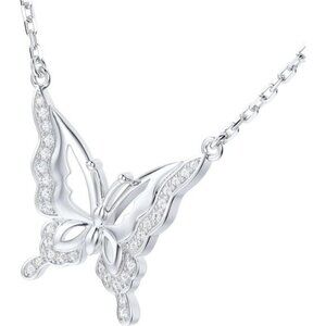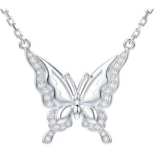 Moissanite Butterfly Pendant Necklace Sterling Silver Adjustable Chain Jewelry G