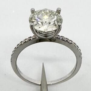 New GRA Certified Moissanite Ring. Round Cut. Very Brilliant and sparkly. Moissanite Ring with side stones. Tested w/ a Gemoro Testerossa Professional Diamond Tester. Tests positive.