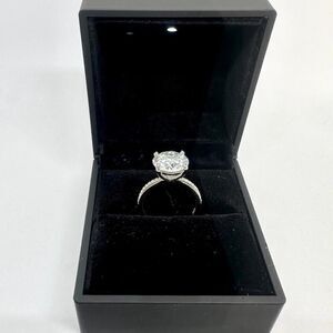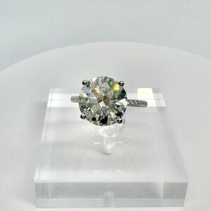 Brilliant Round Cut Genuine Moissanite Ring. Brilliant round cut solitaire. Four Prong Setting with a Huge 5 carat center stone. Tested with a Gemoro Testerossa Professional Diamond Tester. Tests Positive. GRA Card Included.