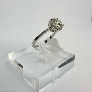 Beautiful Round Cut Genuine Moissanite Ring. Brilliant & Sparkly ring with a pave halo setting. GRA Certificate of Authenticity. Great size everyday!