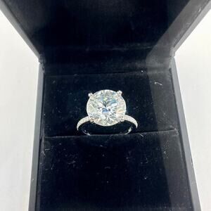 Brilliant Round Cut Genuine Moissanite Ring. Brilliant round cut solitaire. Four Prong Setting with a Huge 3 carat center stone. Tested with a Gemoro Testerossa Professional Diamond Tester. Tests Positive. GRA Card Included.