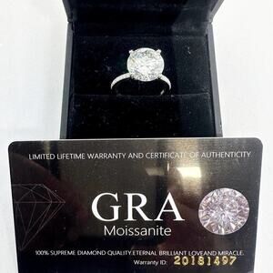 Moissanite Diamond Ring 5 Ct Engagement Wedding Round Cut Solitaire GRA Size 6