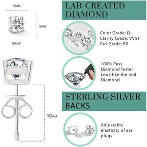 *High Quality:The lab-created diamond earrings are made of 925 Sterling Silver and 18K white gold plated.d Genuine.925 Sterling Silver,Not Brass.