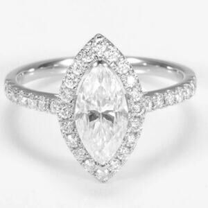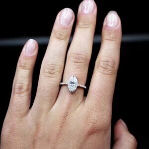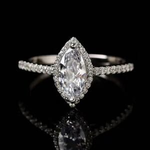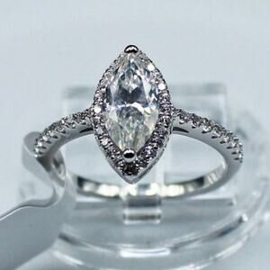 Moissanite Engagement Ring Marquise Cut Halo Pave CZ Sterling Silver 7 NWT