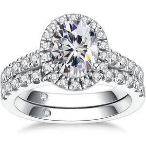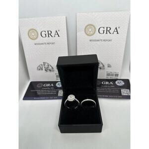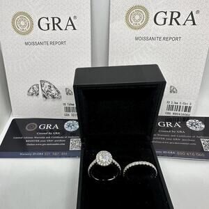Moissanite Engagement Ring Oval Cut GRA Certified Wedding Brilliant 18K Size 5.5