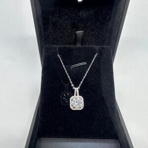 New Round Moissanite Necklace. Beautiful Brilliant & Sparkly Halo Square Pendant w/ chain. Great size everyday! Lightweight & elegant chain. Tested w/ Gemoro Testerrosa Professional Diamond Tester. It tests positive. GRA Card Included.