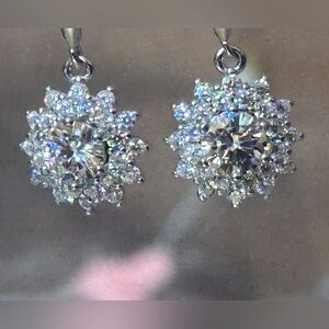 Moissanite One Carat Flower Dangle from slide through leverTests as Diamond but higher Cut,Color and Clarity but way lower Cost