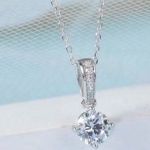 This brilliant1 karat 6.5mm fancy bail moissanite diamond pendant will add sparkle to your life. It is a wonderful gift for an engagement, wedding or just to say I love you. The metal is 925 sterling silver.