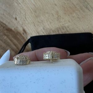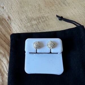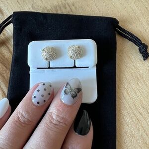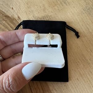 Elegant round moissanite stud earrings totaling 0.81 carats of radiant sparkle. Stones are VVS clarity, D color, offering exceptional brilliance and a true diamond-like appearance. Each stud features a brilliant round center surrounded by iced-out sides for extra fire and shine. Crafted in 925 sterling silver with a luxurious champagne gold-plated finish. These earrings pass standard diamond testing, confirming their authentic moissanite quality. A versatile piece perfect for both everyday wear and special occasions.