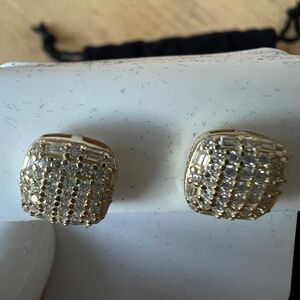 Sleek and modern unisex moissanite stud earrings featuring 0.36 carats total weight of brilliant sparkle. Designed in a rounded square shape, each stud combines brilliant-cut and baguette moissanites for a sophisticated, geometric look. Stones are VVS clarity, D color, delivering exceptional fire and diamond-like brilliance. Crafted in 925 sterling silver with a rich gold-plated finish. These earrings pass standard diamond testing, confirming their authentic moissanite quality. A versatile style perfect for both men and women, from casual wear to formal occasions.