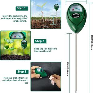 How to Use: Simply insert the soil moisture meter into the soil to obtain test results immediately. The large and clear dial is easy to read and use without a battery.