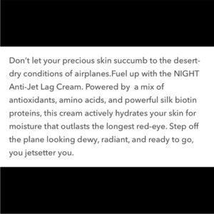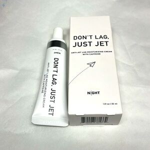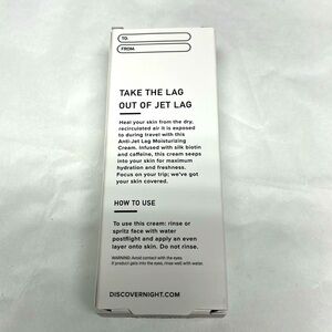 NIGHT Anti-Jet Lag Moisturizing Cream with caffeine. Perfect for travel. Sleek white packaging.