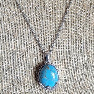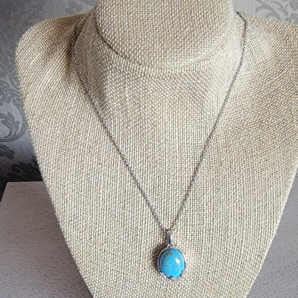 Karis Mojave blue turquoise (13.65 ctw) pendant in 18K YG plated and platinum bond with stainless steel. 20 inches in length.
