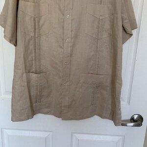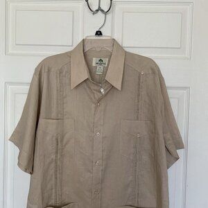 Mojito Shirt Mens 2X Guayabera 4-Pocket Button Down Short Sleeve Beige Linen NEW