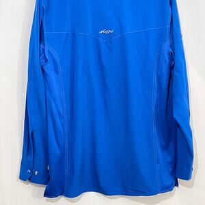 Mojo Sportswear Co Fishing Shirt Men's Medium Blue Pearl Snap, Vented, Quick Dry, Breathable, Lightweight. Stretchy with Pockets. Excellent condition.