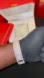 Sophisticated Mojssanite Cartier watch in diamonds with blue accents. Presented in a striking red box with papers.