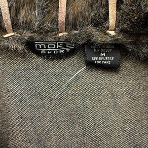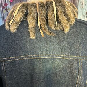 Moka denim jacket NWT, size medium, faux fur and sueded fringe trim