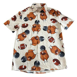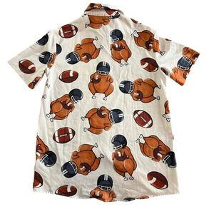 Mokaloha Men's Thanksgiving Fun Turkey Football Print Short Sleeve Button Down