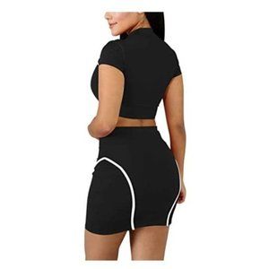 Mokoru Women's Sexy 2 Piece Crop Top Bodycon Mini Skirt Set Black & White New Size Large
