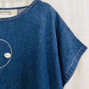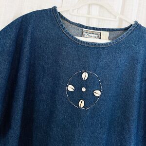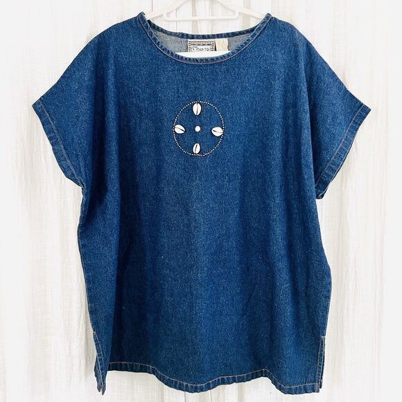 Molato 100% Cotton Boho Hippie Beachy Denim Tunic Shirt Seashells Plus 2X