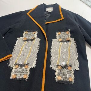 Molato Embroidered Black Lagenlook Art To Wear VTG Duster Jacket Size Medium