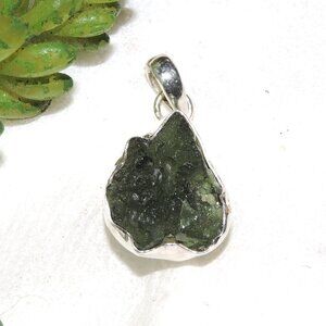 Moldavite Natural Gemstone 925 Sterling Silver Pendant, Raw Moldavite rare Stone