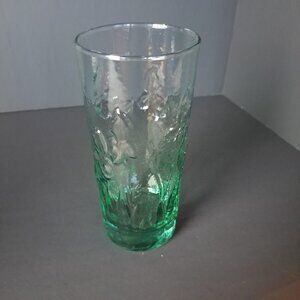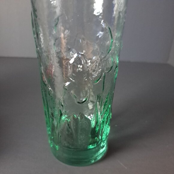 Molded Embossed Iris Floral Weighted Bottom Pale Emerald Green Tumbler Vintage