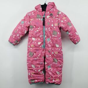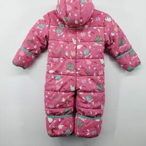 Molehill Infant Bunting Snowsuit 9M Pink Animal Print Fleece Lined Zip Hooded