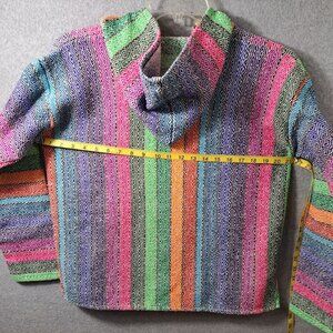 baja hoodie, woven pullover, striped hoodie, unisex hoodie, medium hoodie, boho style, festival wear, colorful hoodie, hooded sweatshirt, casual wear, Mexican hoodie, cotton blend hoodie, multicolor pullover, Beach wear, blanket material, rainbow multi colors, front pouch pocket, Logo tab