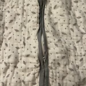 soft muslin sleepsack with no flaws or marks and a gray and white printed pattern :)