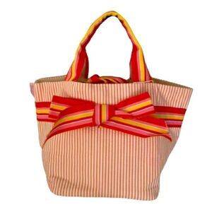 • Tote with ribbon tie closure, bow detail, interior pocket