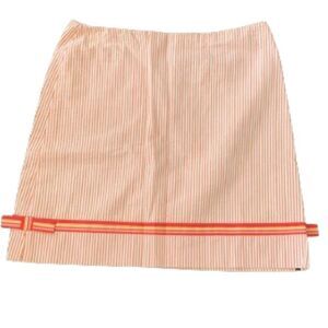 • Coral-orange striped seersucker