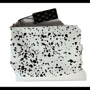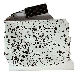 Mollie Jacob white w black speckles makeup pouch or purse NWT